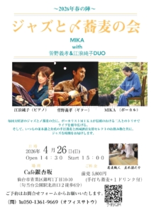 日時 4月26日(日)開演15:00~ ジャズと〆蕎麦の会